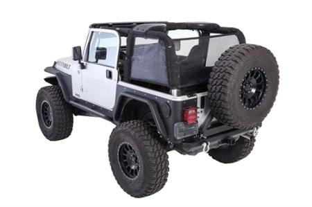 Smittybilt is proud to introduce their new Cloak Extended Mesh Top, which allows you to enjoy the open air from the shade of your Jeeps passenger compartment. Available for 97-06 Jeep Wrangler TJs and both two door and four door 07+ Jeep Wrangler JKs, the Cloak is made from durable PVC-coated mesh that is resistant to both ultraviolet rays and mildew. The Smittybilt Cloak installs easily using heavy duty bungee cords with no tools required and fits under standard hard tops or soft tops. Double layer stitching allow the Cloak to shrug off even the largest gusts of wind.